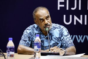 FNU’s College of Humanities, Education and Law (CHEL) Dean, Professor Mesake Dakuidreketi, delivers the welcome remarks at the MoU signing.