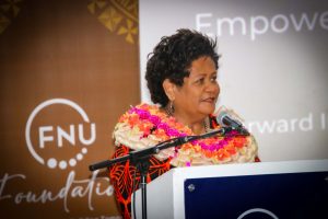 FNU Vice-Chancellor, Professor Unaisi Nabobo-Baba delivers her remarks at the FNU Foundation one year anniversary and Nasinu Hub launch.