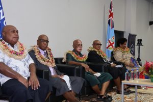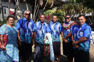 From left: Turaga Ni Yavusa Noneiqoro, Kalaveti Vueti Qori, Reverend Josefa Sewale, Momo Na Tui Nadi, Ratu Vuniani Dawai, FNU Chancellor, Mr. Semesa Karavaki and the FNU Vice-Chancellor, Professor Unaisi Nabobo-Baba.