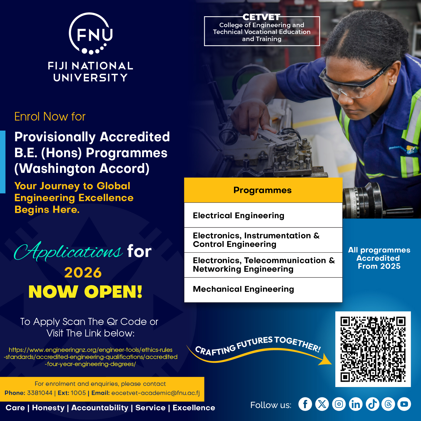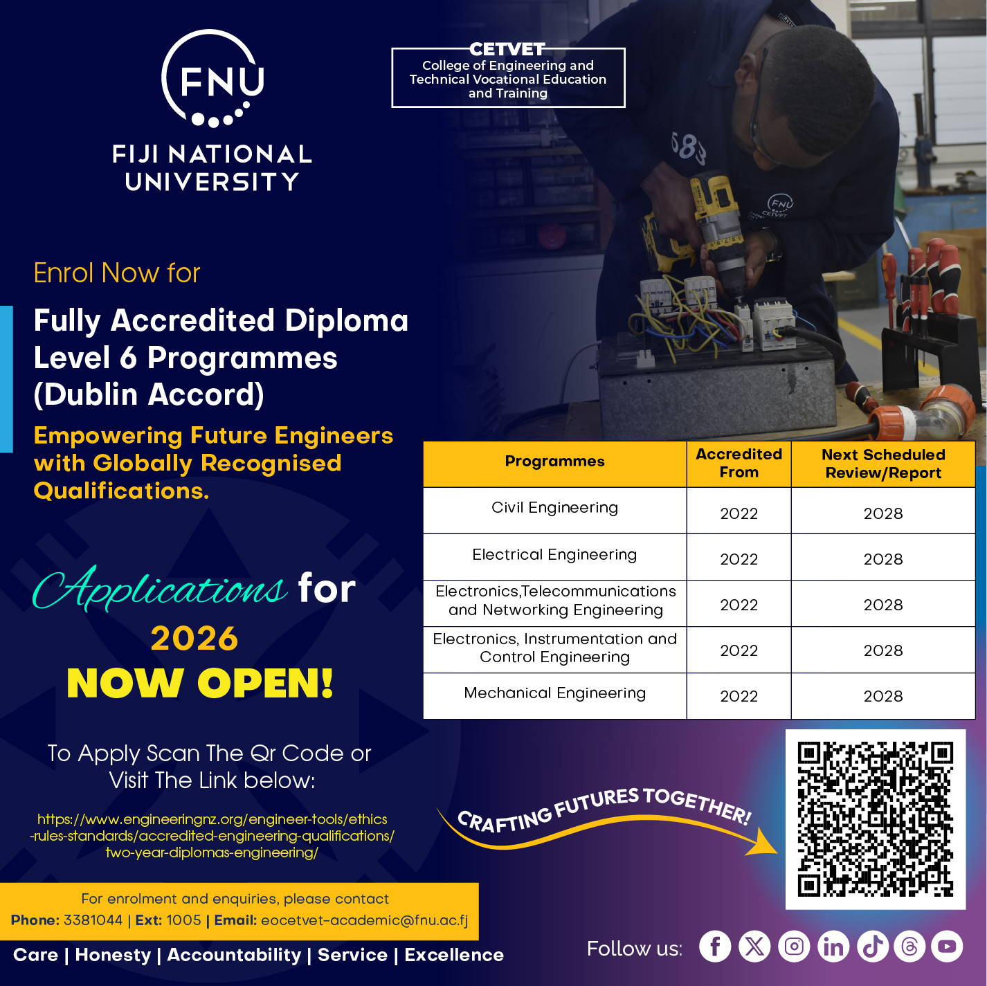 CETVET is also proud to have four of its Bachelor of Engineering (Hons) programmes provisionally accredited under the Washington Accord, further strengthening its position as a leader in engineering education across the Pacific region.