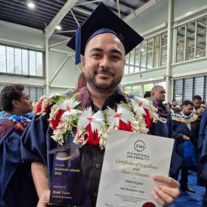 Congratulations to Izak Benjamin Yam, a former FM96 radio host who proudly graduated today with a Bachelor of Nursing from FNU.