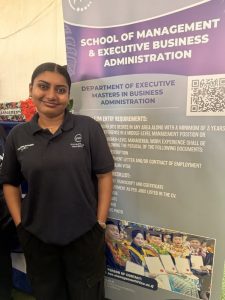 “As a volunteer, my main goal is to provide students with information and support,” Felicia explained. “I help them understand the different programmes we offer, such as the Bachelor of Commerce in HR, IR, and Marketing, and how these programmes align with their interests and career goals.”